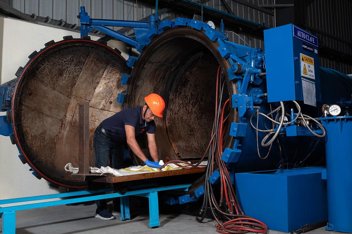 Autoclave Moulding of impregnated fabrics of glass, carbon, silica and aramid with epoxy, phenolic and other resins, to produce composite structural parts as well as ablative liners. Useable size of 1.2m dia and 3m length.